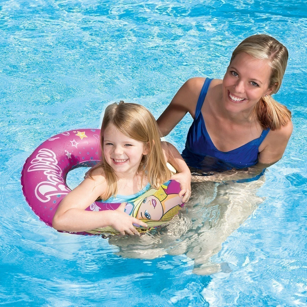 The 56cm Barbie® Swim Ring from Bestway® features safety valves and is made from sturdy pre-tested vinyl. Enjoy the pool with Barbie®!