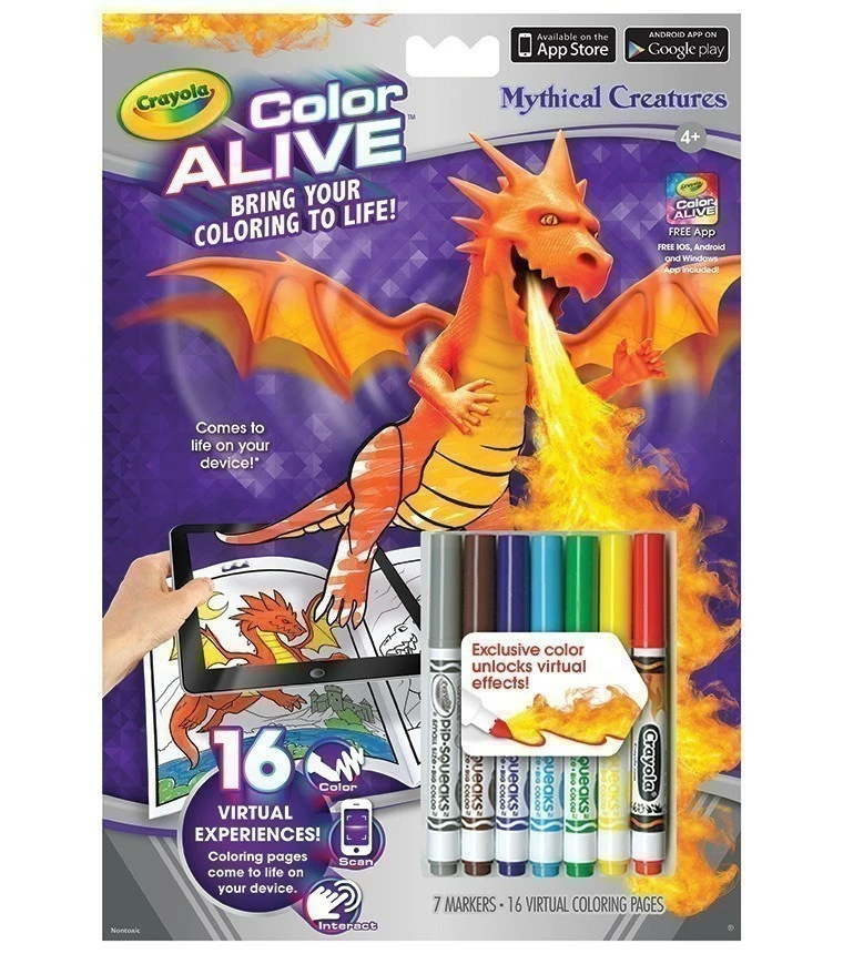 Revolutionising the world of colouring, Colour Alive brings children’s colouring to life. A special app and marker transform colouring by activating a virtual experience complete with colour effects. Crayola Colour Alive Mythical Creatures comes with six Crayola markers, one special colour effects marker, free app download, and 16 virtual colouring pages featuring dragons, wizards, and other characters for young artists to colour and interact with.