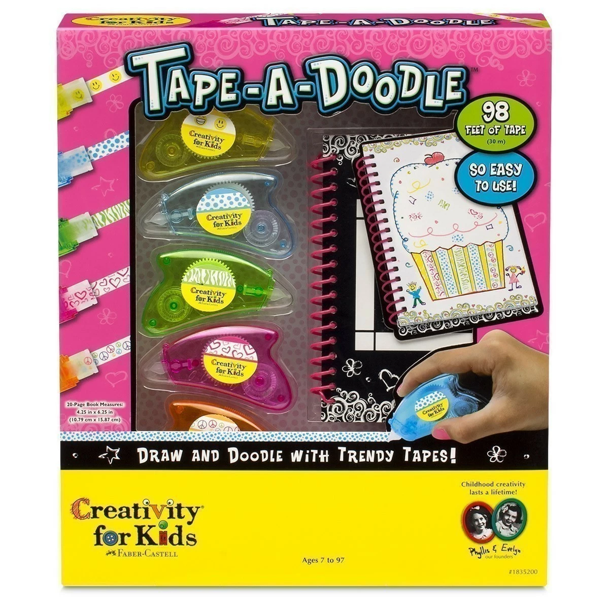 Draw & Doodle with trendy tapes with decorative tape designs that you can apply to your art & drawings. Use the included markers and spiral bound book to doodle and then roll out the tape! The Creativity for Kids® Tape-A-Doodle™ helps you to make a great impression really ‘stick’!