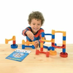 An intriguing and fascinating construction set where you create a variety of marble runs using 30 colourful slot-together plastic pieces. Watch the marbles disappear inside columns then roll down and around the chutes on their decent to a home base.