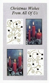 Message inside card reads: “May the happiness of Christmas surround you with it’s joy and cheer, and be with you every moment through a bright and joyful New Year. Happy Christmas”