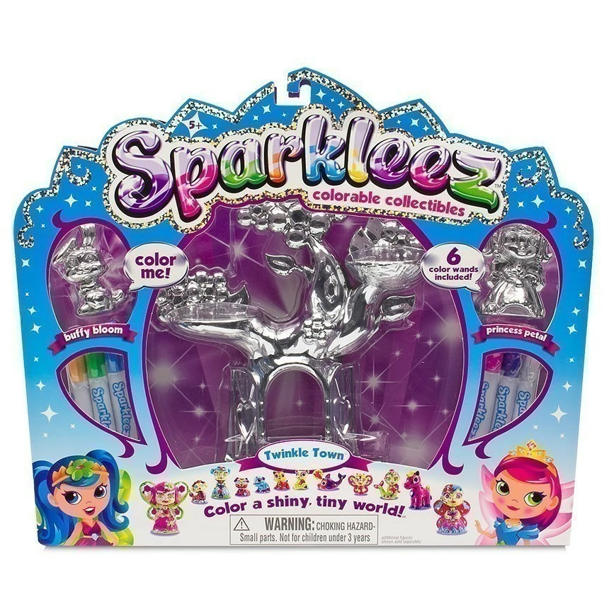 Contents: 1 Twinkle Town Tree, 2 Parkleez™ figures, 5 colour wands (markers), 1 colour wand eraser, 1 play mat and instructions.