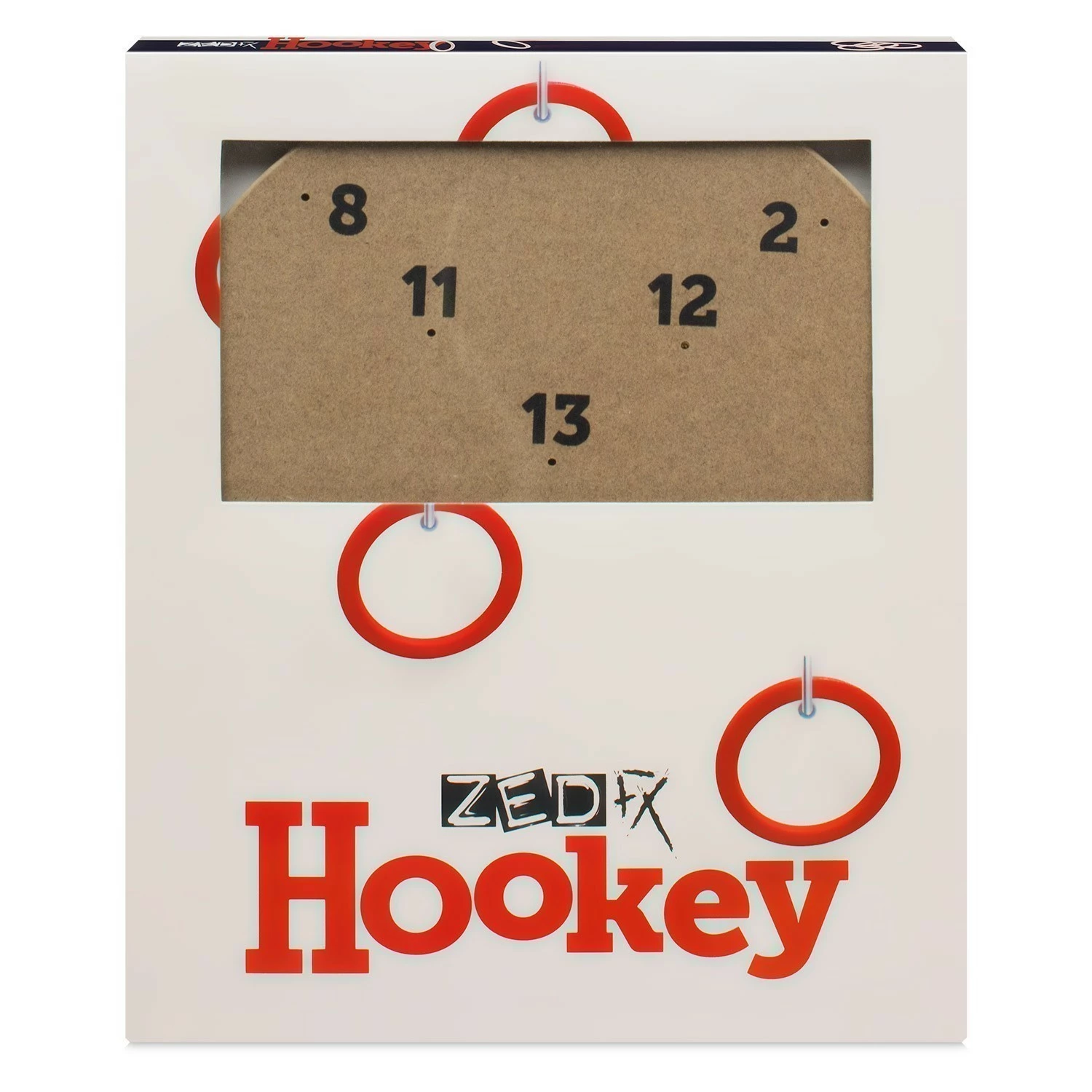 Hookey is a classic game of skill that requires players to throw rings at the Hookey board to reach a target score of 101 points to win. Included are two game variations the whole family will enjoy. Hookey is also a more challenging game and is a safer alternative to regular darts.
