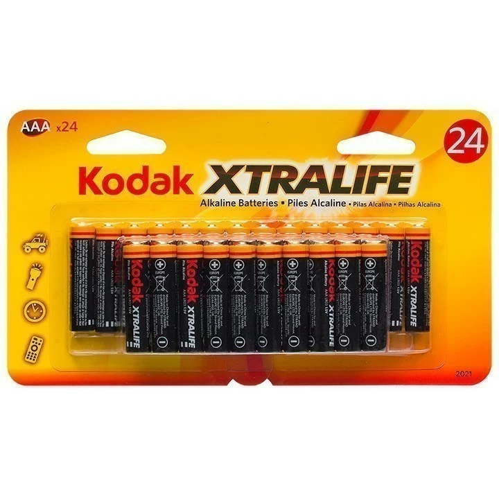 Kodak brand Xtralife Pack consists of 24 “AAA” Alkaline batteries. Ideal for toys, torches, clocks and remote control devices.