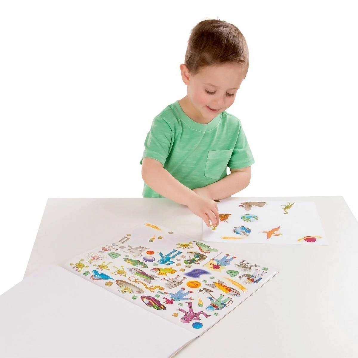 Over 500 stickers are compiled in one giant sticker book. Each page is packed with stickers to illustrate favourite topics including dinosaurs, construction, outer space and many more. Create a picture or tell a story with these favourite themed stickers.